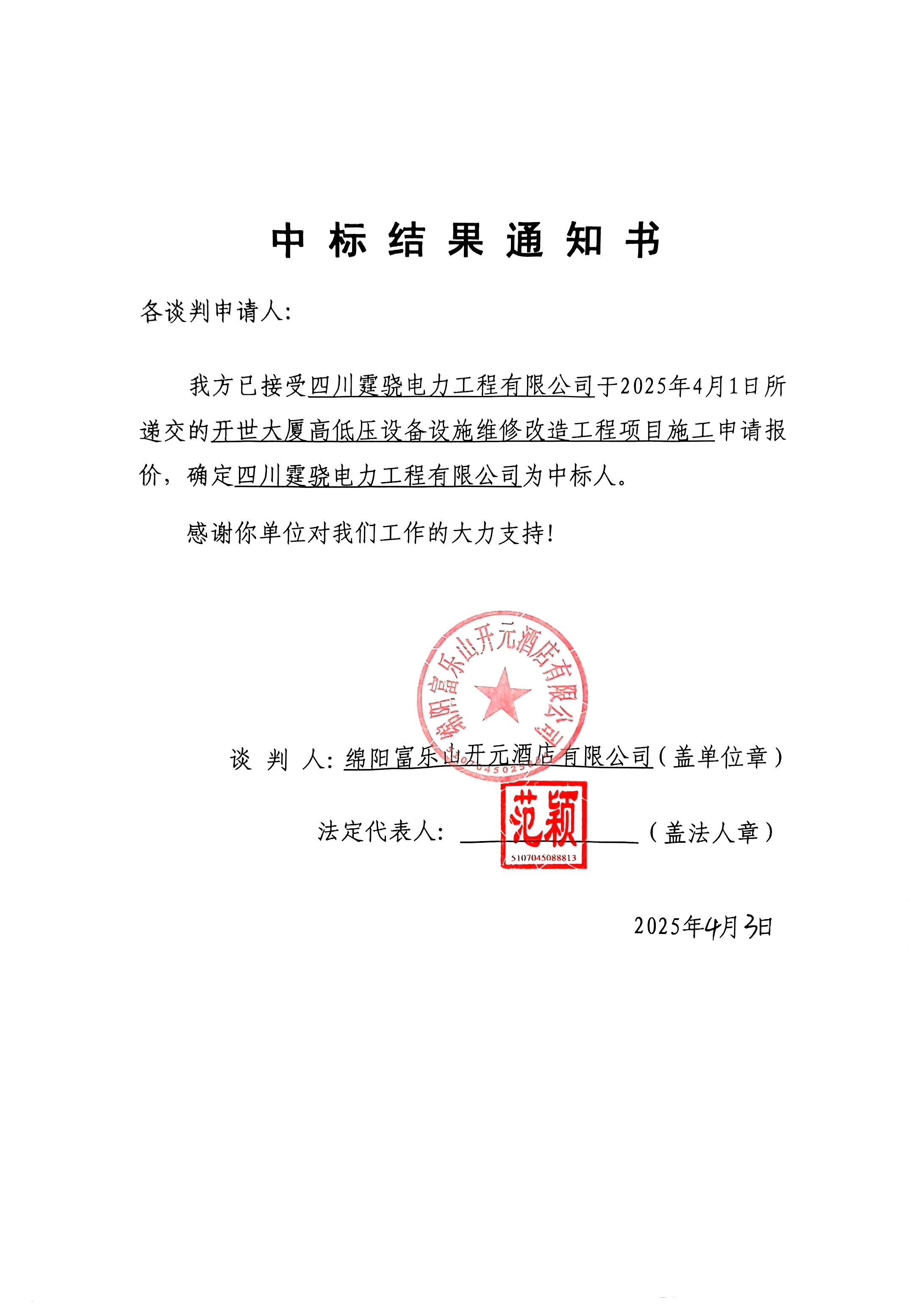 開世大廈高低壓設(shè)備設(shè)施維修改造工程項(xiàng)目施工競爭性談判結(jié)果公告